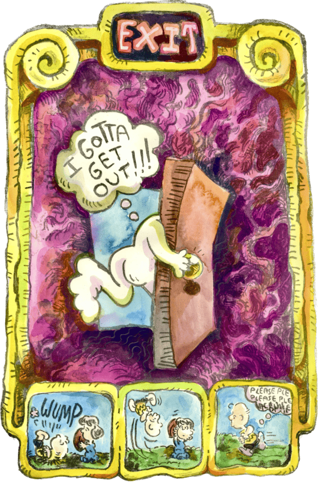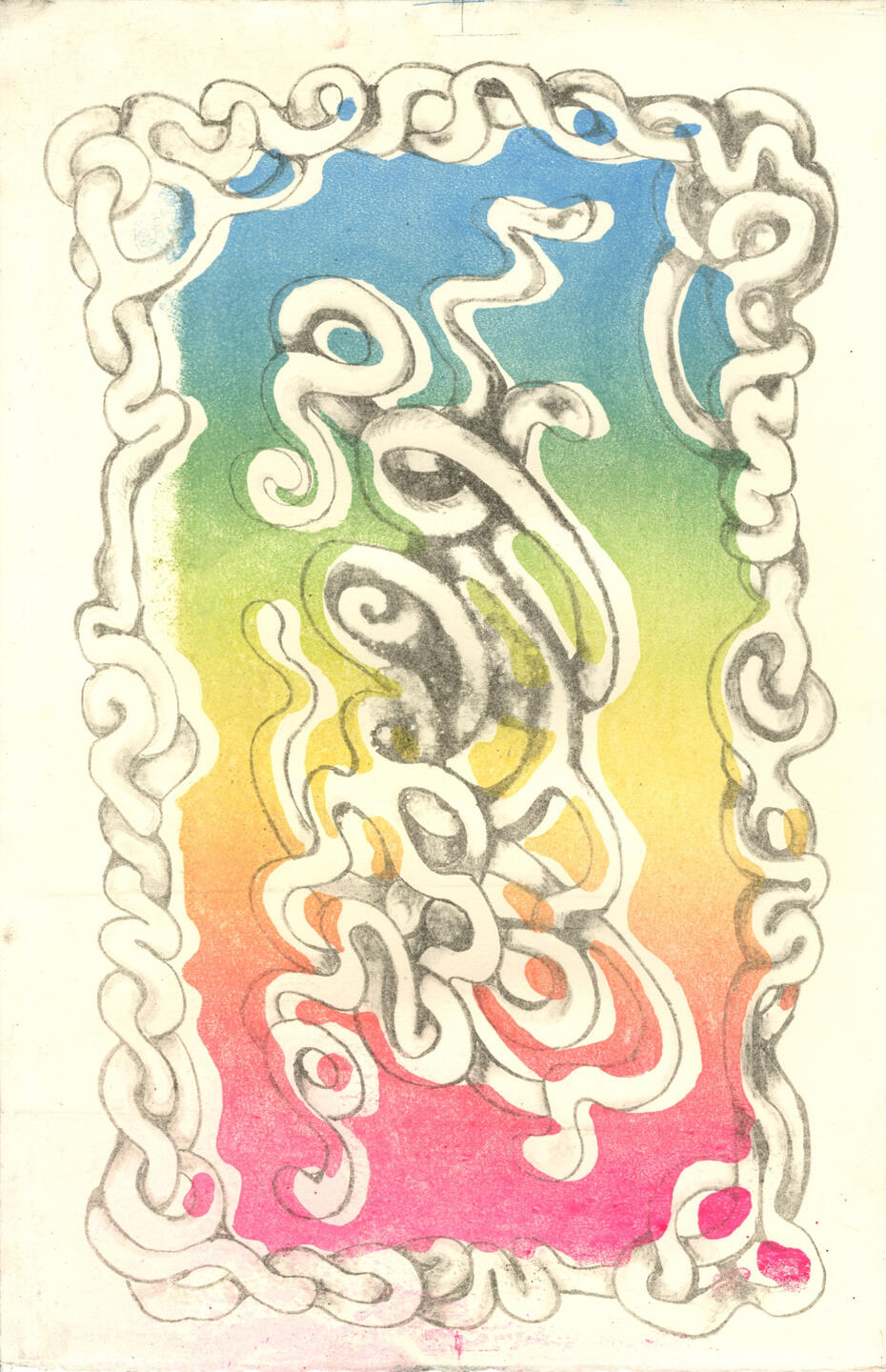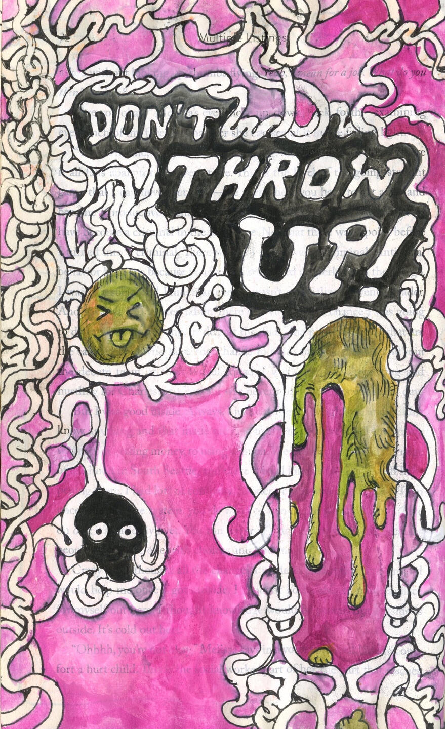Starting off at the Minneapolis College of Art and Design in 2022 as an illustration student, heavily inspired by editorial illustrations of the 1960’s, Jude Van Zee has grown the scope of his practice to include mediums such as lithography and screenprinting using MCAD’s printshop facilities to refer back to the materials used in bygone psychedelic posters. One such lithographic print titled ‘i think i’m spiraling again’(2024) had been selected for Lynaea Russom’s Early Career Artists Show, at Squirrel Haus Arts. Outside of gallery spaces Jude has done design work for numerous clients and sold at many different markets across the twin cities.
