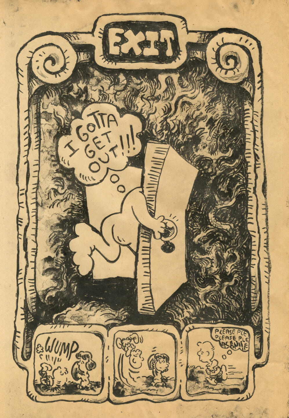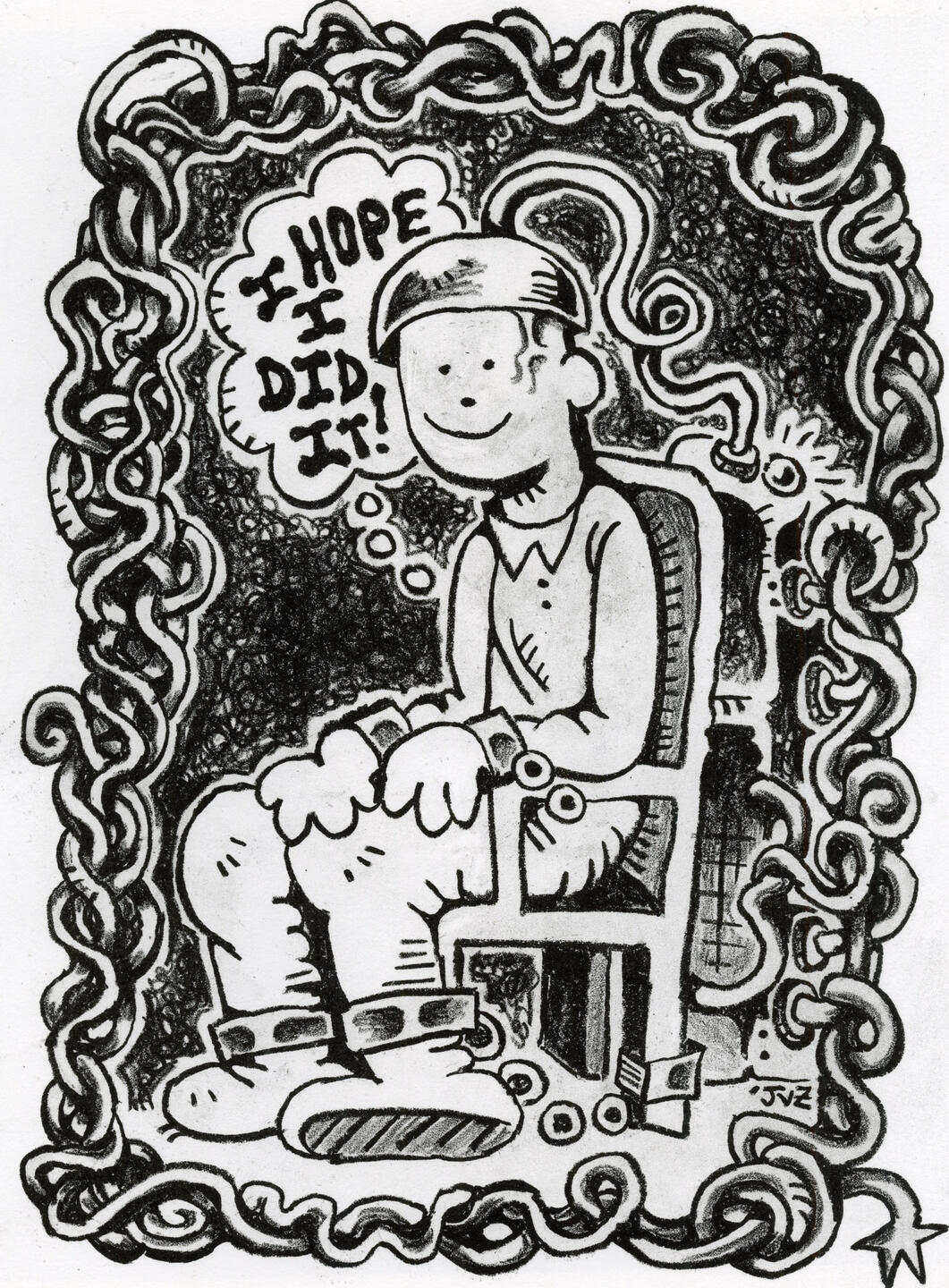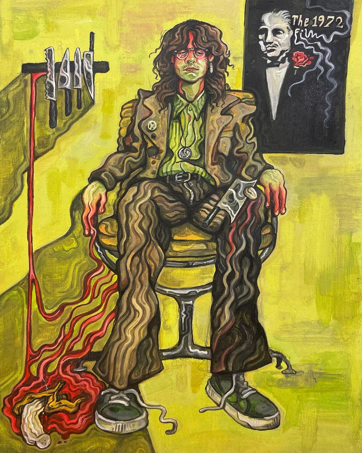 Starting off at the Minneapolis College of Art and Design in 2022 as an illustration student, heavily inspired by editorial illustrations of the 1960’s, Jude Van Zee has grown the scope of his practice to include mediums such as lithography and screenprinting using MCAD’s printshop facilities to refer back to the materials used in bygone psychedelic posters. One such lithographic print titled ‘i think i’m spiraling again’(2024) had been selected for Lynaea Russom’s Early Career Artists Show, at Squirrel Haus Arts. Outside of gallery spaces Jude has done design work for numerous clients and sold at many different markets across the twin cities.